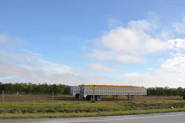 Az ültetvények mellett óriási pótkocsik vártak a szállításra.